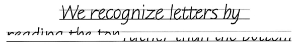 Na fonte original da notícia, o site “http://www.nytimes.com/interactive/2009/09/04/opinion/20090908_opart.html, os autores fazem uma dura crítica ao sistema de caligrafia ora ensinado na escola america e, ainda sugere que as pessoas voltem a usar o sistema de caligrafia itálico (popular na renascença). A vantagem de usar o itálico é que as letras cursivas nesse sistema caligráfico são mais fáceis de escrever e privilegiam o topo do caracter, a parte mais facilmente reconhecível por nós. Duvida disso? Então veja os exemplos abaixo: E a palavra abaixo, você consegue ler? O artigo é bem ineressante por si só, mas os autores resolveram ainda dar umas dicas de como escrever melhor, ensinando até mesmo como segurar melhor a caneta. Ok, fica a dica, não esqueça de fechar o topo das suas letras cursivas quando você for escrever a próxima carta para aquele amigo que mora na Papua Nova Guiné. 🙂