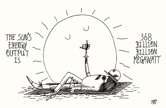 Legenda: O sol libera 368 bilhões de MegaWatt (diariamente).