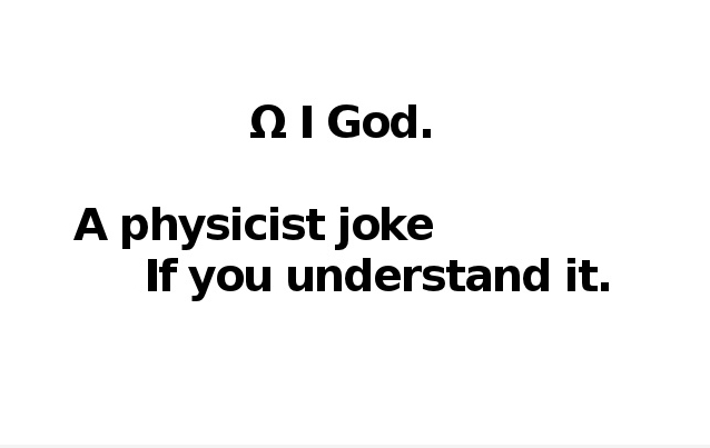 Daí que a piada só funciona em inglês, pois a expressão "Ω I God" remete a uma exclamação famosa também em inglês "Oh my God".