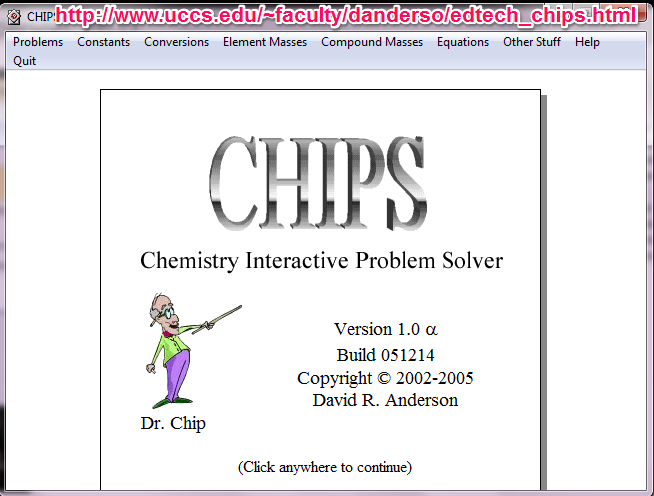 Não é simplesmente um software do tipo “diga-se sua resposta e eu direi se está certa ou não”, mas um no qual um personagem animado, Dr. Chip, realmente guia os estudantes passo a passo através do processo de organizar e resolver problemas de Química Geral, tal como se costuma fazer em sala de aula.