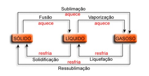Notem que para qualquer substância pura passar de um estado de maior agregação para um de menor agregação, será sempre necessário absorver energia de alguma fonte. Em outras palavras, será necessário aquecer o Sólido para transformá-lo em Líquido ou em Vapor (ou Gás). Também será necessário aquecer o Líquido para transformá-lo em Vapor. Exemplo: para ferver água é necessário colocá-la em uma chaleira e acender uma chama sob ela.