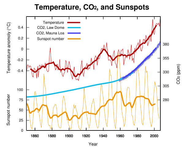 De outra ponta, temos as oscilações naturais desses dois parâmetros: tudo isso também, obviamente, faz parte de diversos fenômenos naturais. Ambos, também, são conhecidos na atualidade e rastreáveis por diversos dados até eras geológicas no passado (sim, podemos interpretar os dados para medir a temperatura, a composição atmosférica e a própria atividade solar alguns milhões de anos atrás).