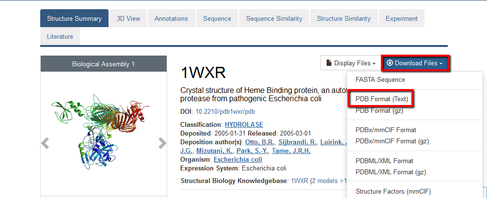 Dentre os vários formatos de estutura molecular que o software é capaz de abrir, eu escolhi o formato PDB (Protein Data Bank).