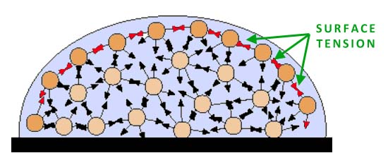 Assim sendo, as partículas da superfície do líquido possuem uma força resultante apontando para o interior do líquido.