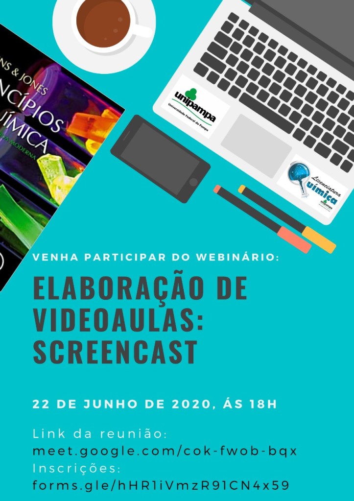 Dia 22-06-2020, o acadêmico do curso de Química Licenciatura Carlos dos Santos (meu excelentíssimo orientando de TCC), ministrou um webinário muito interessante para discentes e docentes da UNIPAMPA e do Estado do RS.