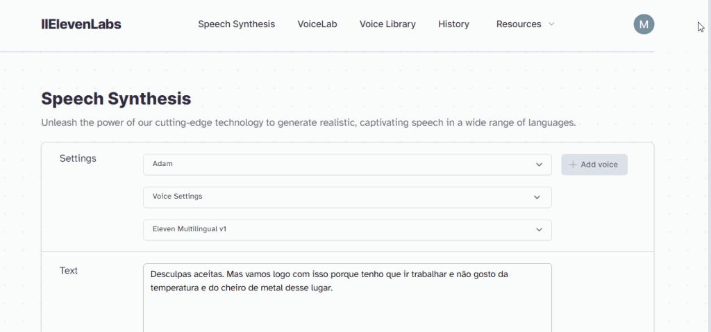 1.Geração das falas no site http://elevenlabs.io (é só digitar o texto, escolher a voz e baixar o arquivo mp3)